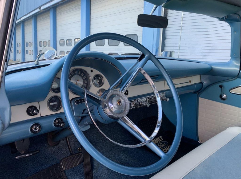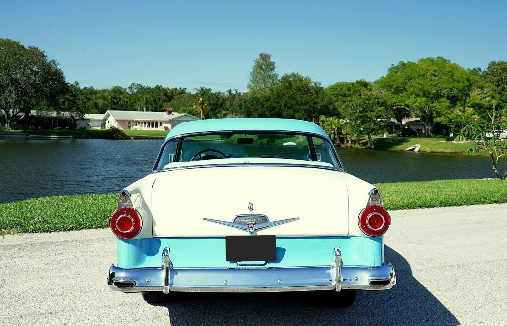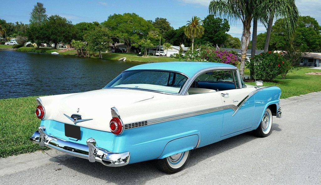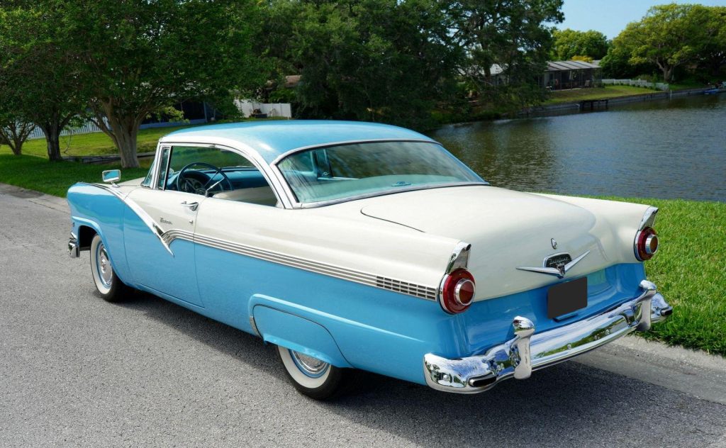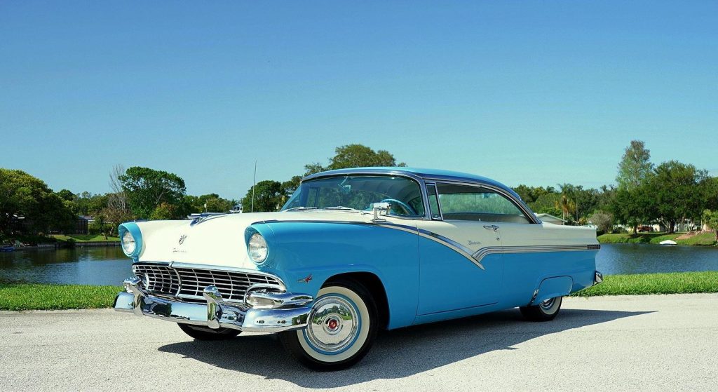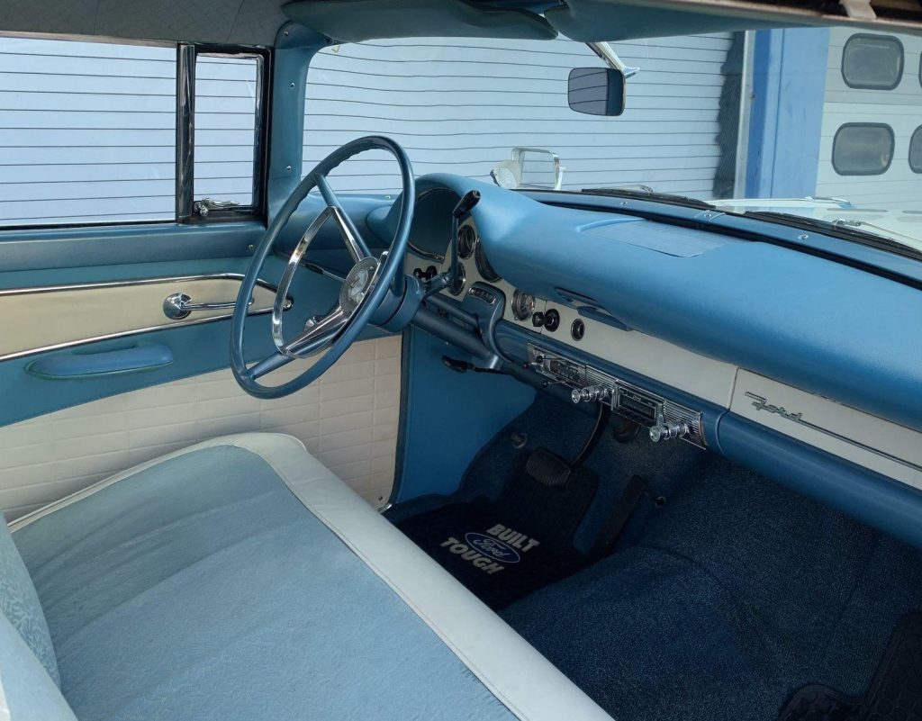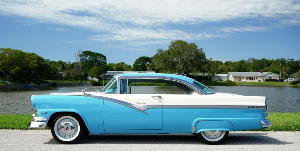 We are pleased to offer this 1956 Ford Victoria Hardtop finished in striking Bermuda Blue and Colonial White. It’s powered by a 292 Y-Block V8 with dual 2-barrel carbs, a custom one-of-a-kind air cleaner, and polished Thunderbird valve covers, paired with an automatic transmission and dual exhaust through the bumper tips. This Victoria features a 12-volt electrical system, power front disc brakes, and 15” painted steel wheels with wide whitewall radial tires and hubcaps. The classy interior offers…