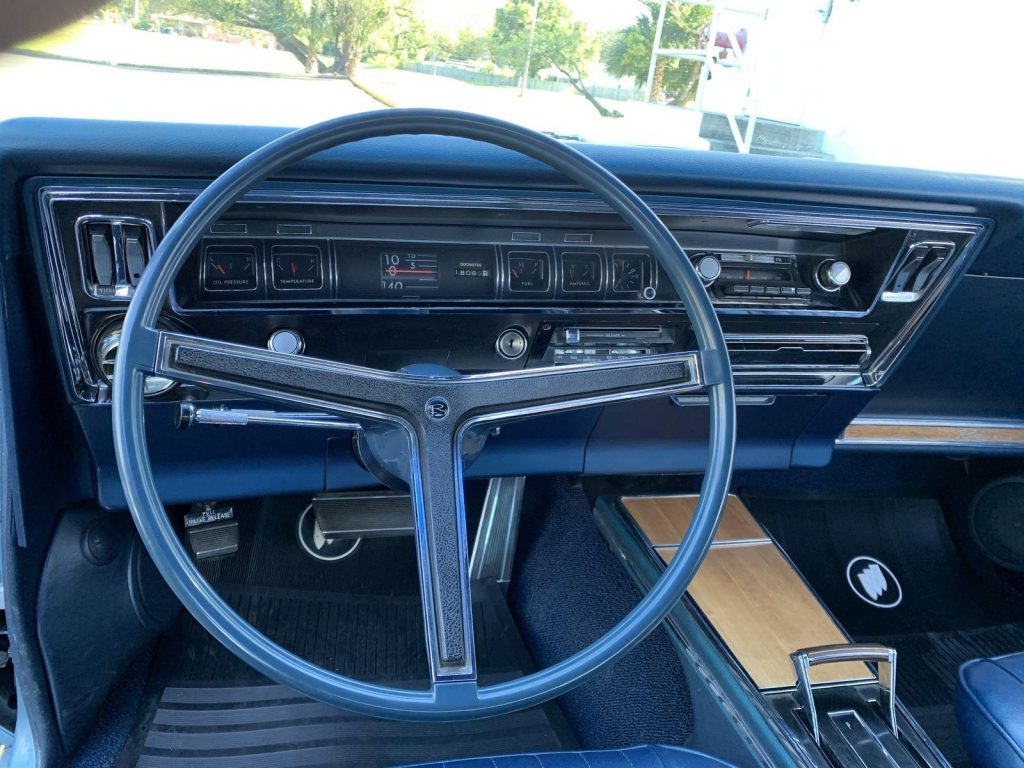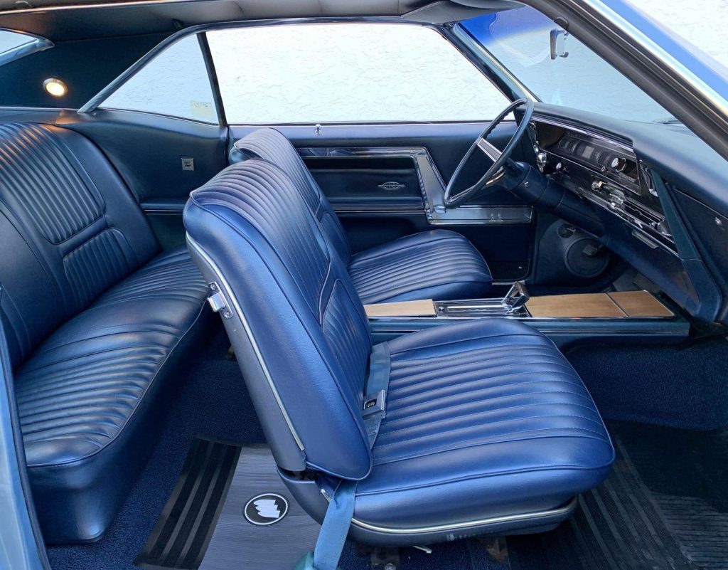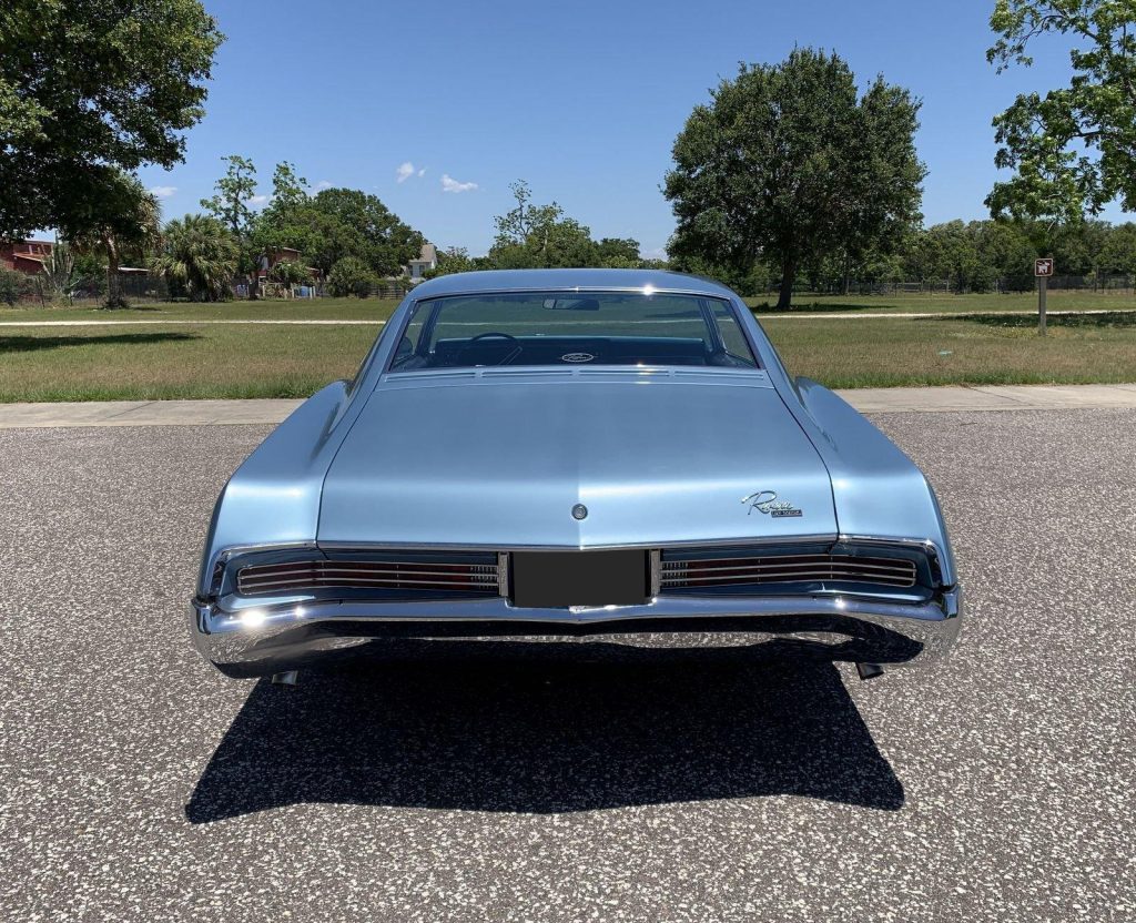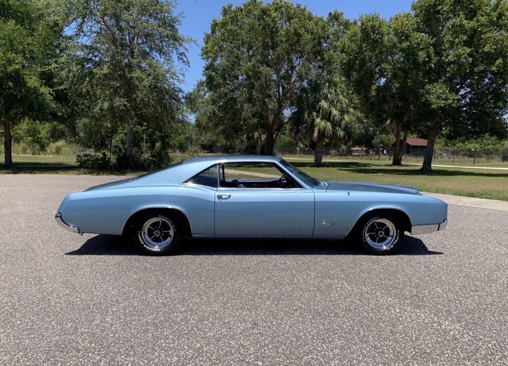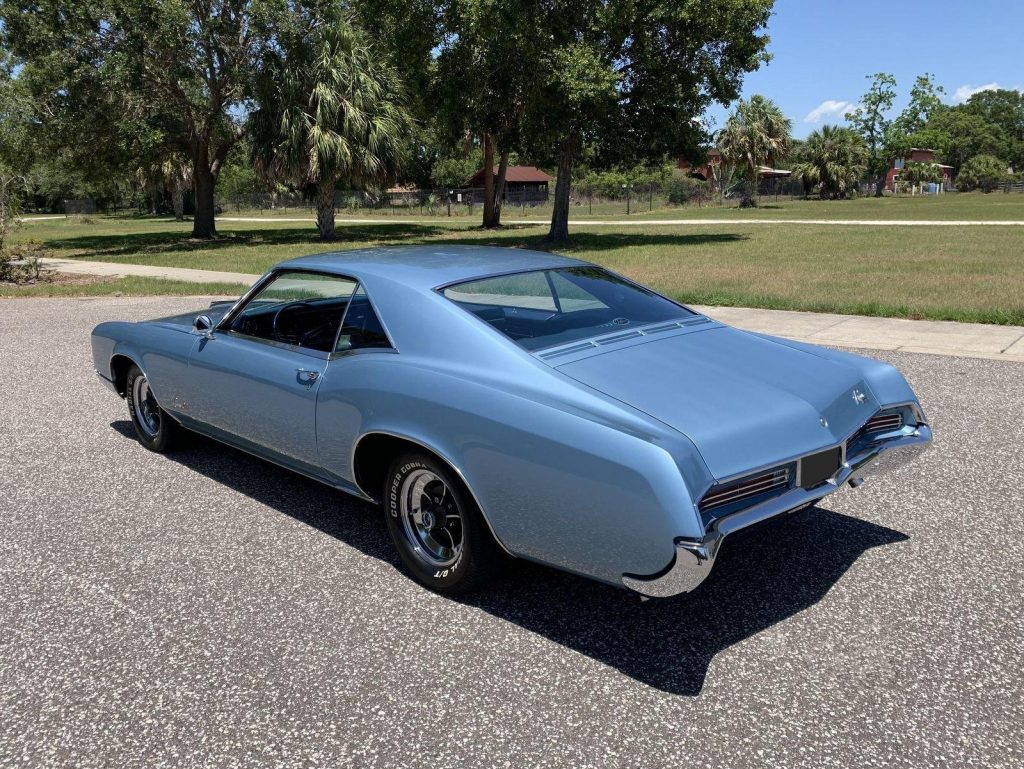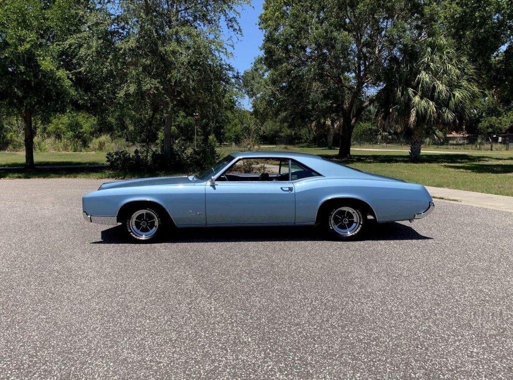 We are pleased to offer this 1967 Buick Riviera GS finished in Sapphire Blue Metallic with a blue bucket seat interior and center console. Power comes from a 430 Cu In V8 factory rated at 360 hp paired with an automatic transmission, Edelbrock aluminum intake, Rochester Quadrajet carburetor, and dual exhaust. This Riviera is well equipped with factory air conditioning, power steering, power brakes, and power windows for comfort and convenience. Additional features include working hideaway headlights, chrome remote driver’s mirror, power antenna, and a modern radio discreetly hidden in the glove box. Rolling on 15” chrome Buick Rallye wheels with Cooper white letter radials, this Riviera GS is a stylish and powerful classic ready to enjoy.