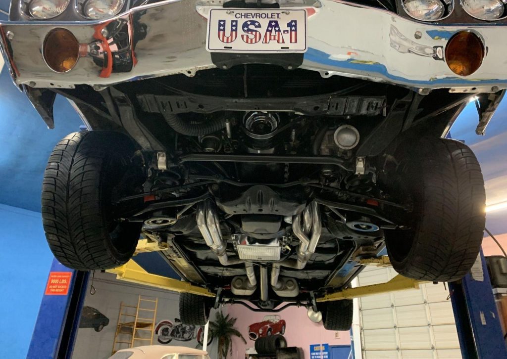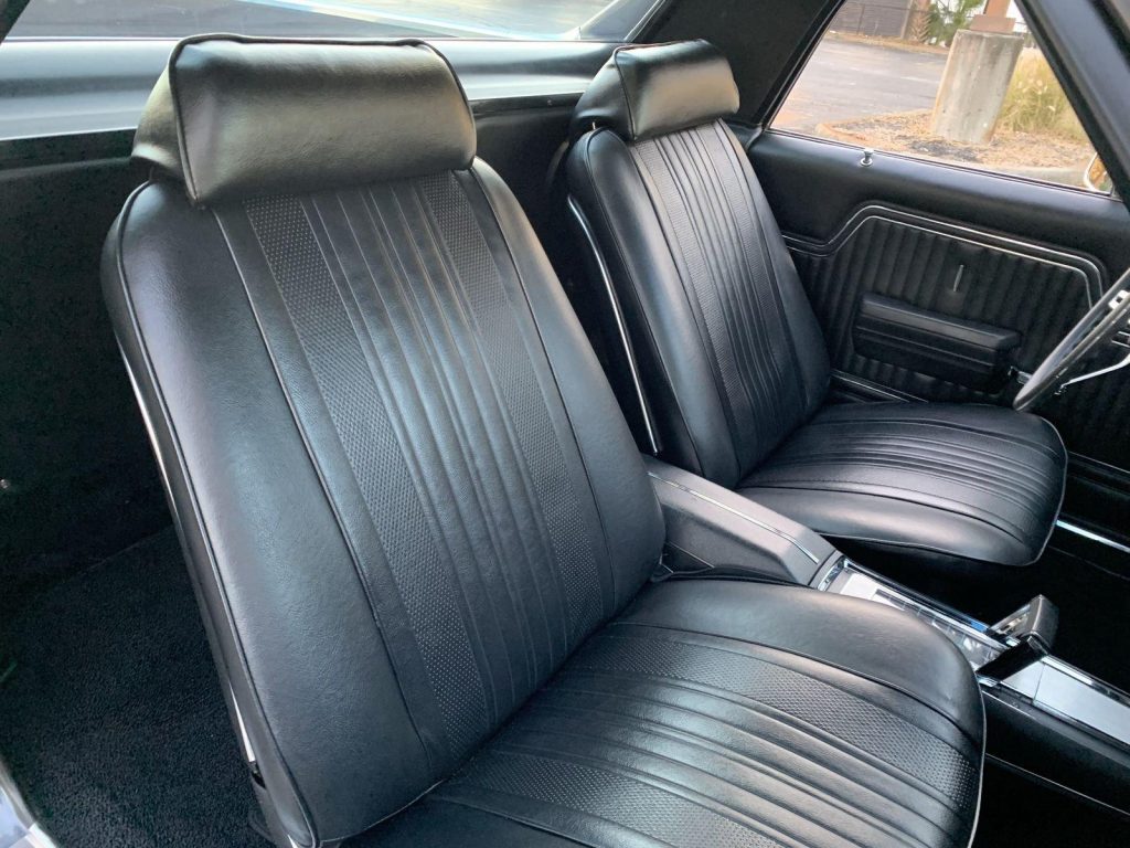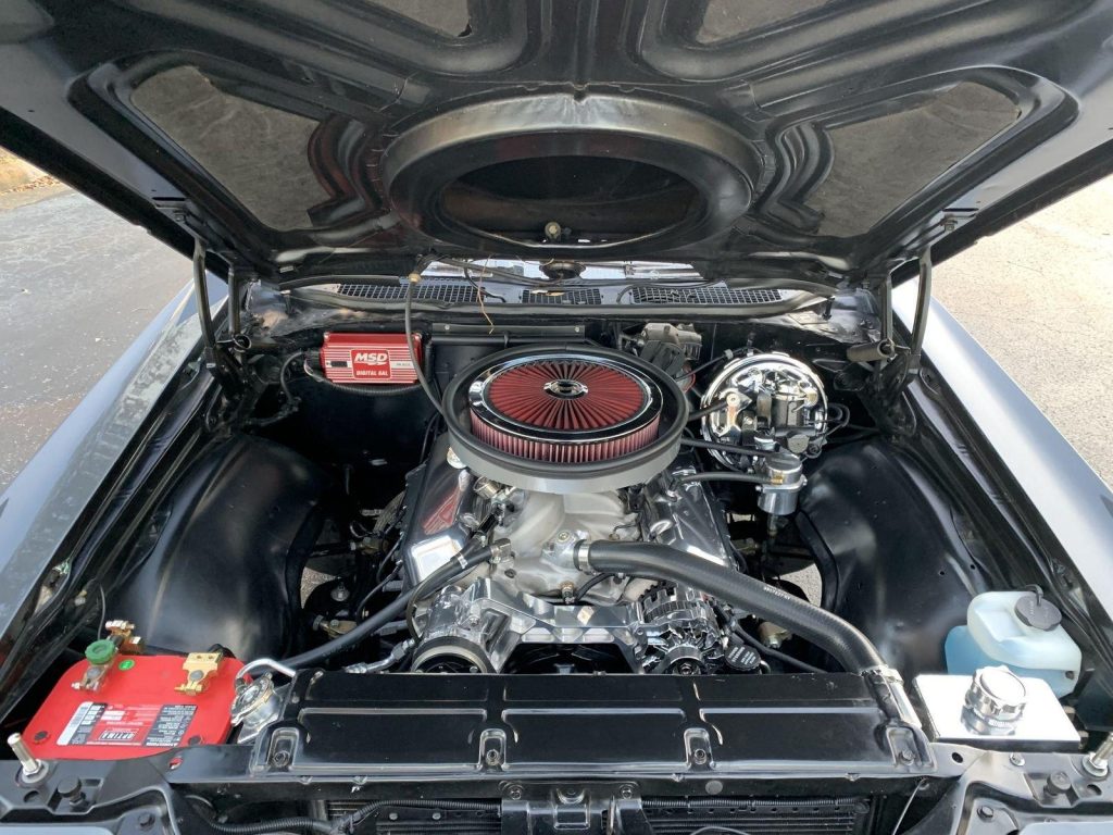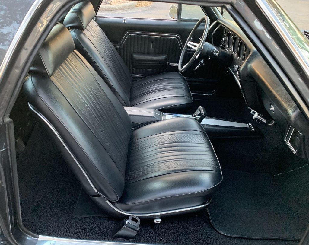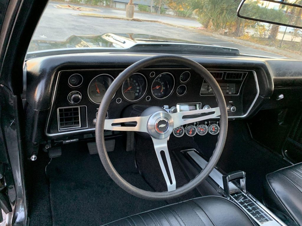 We are pleased to offer this 1970 Chevrolet El Camino Super Sport for Sale. Title shows actual miles. Aluminum Head GM 502 crate engine, Demon 4 barrel carburetor, ceramic coated headers, dual exhaust, MSD electronic ignition, BeCool Radiator, detailed engine bay, 700R4 automatic overdrive transmission, 12 bolt posi 3:73 rear end, serpentine pulleys, upgraded front suspension with adjustable upper control arms and tubular lowers, quick ratio steering box, power steering, front power disc brakes, 18” US Mag Wheels, 12 bolt rear end, upgraded Hotchkis rear suspension and sway bar, Cowl Hood with pins, Code 17 Shadow Gray exterior with black Rally Stripes, black bucket seat interior, center console, tachometer dash, auxiliary gauges, Retrosound Radio, Vintage Air Conditioning, deluxe steering wheel, reproduction owner’s book.