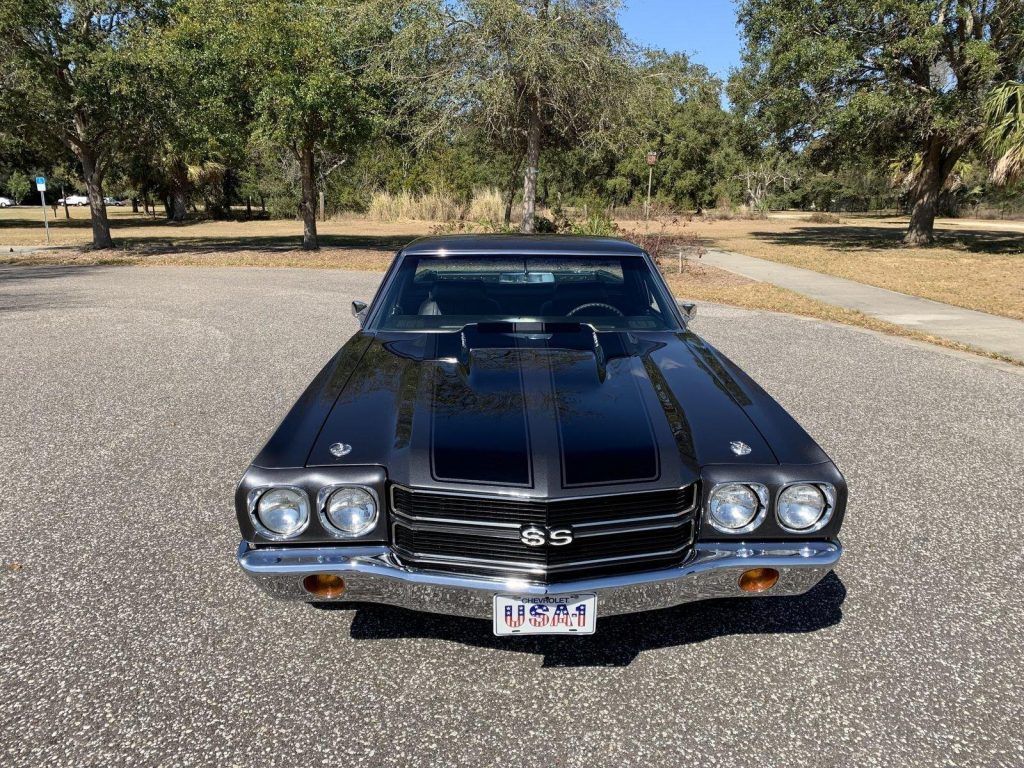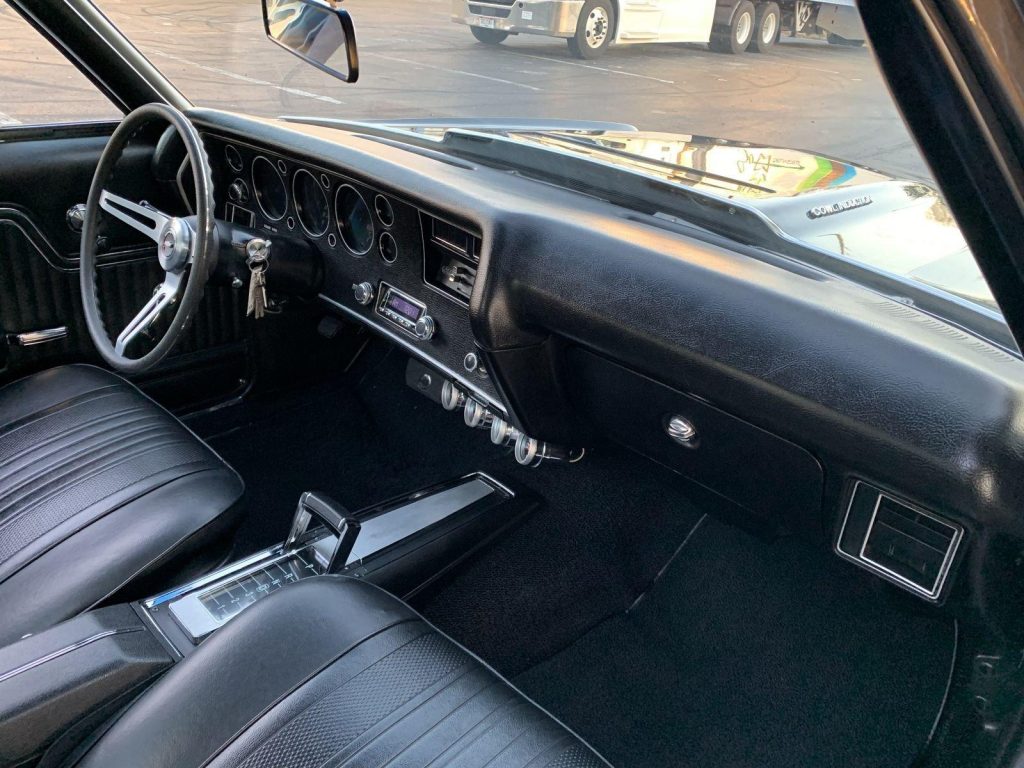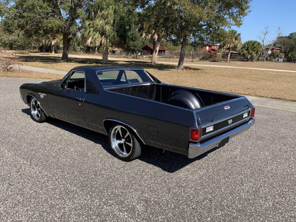 We are pleased to offer this 1970 Chevrolet El Camino Super Sport for Sale. Title shows actual miles. Aluminum Head GM 502 crate engine, Demon 4 barrel carburetor, ceramic coated headers, dual exhaust, MSD electronic ignition, BeCool Radiator, detailed engine bay, 700R4 automatic overdrive transmission, 12 bolt posi 3:73 rear end, serpentine pulleys, upgraded front suspension with adjustable upper control arms and tubular lowers, quick ratio steering box, power steering, front power disc brakes, 18” US Mag Wheels,…