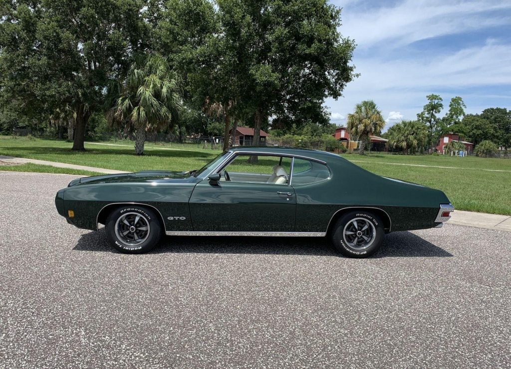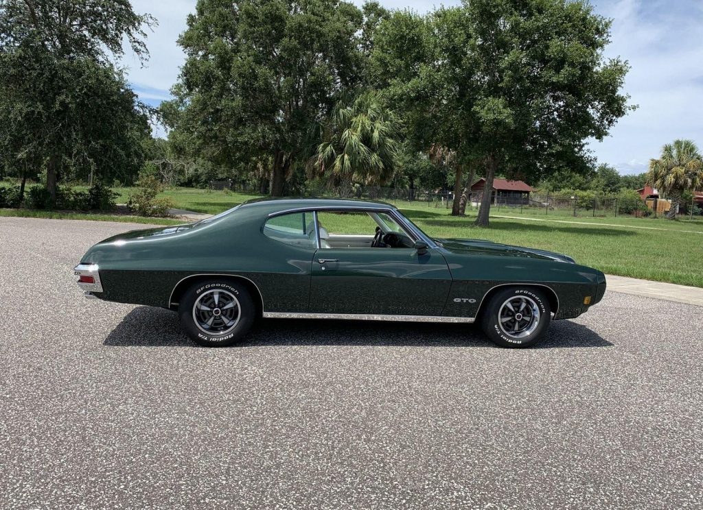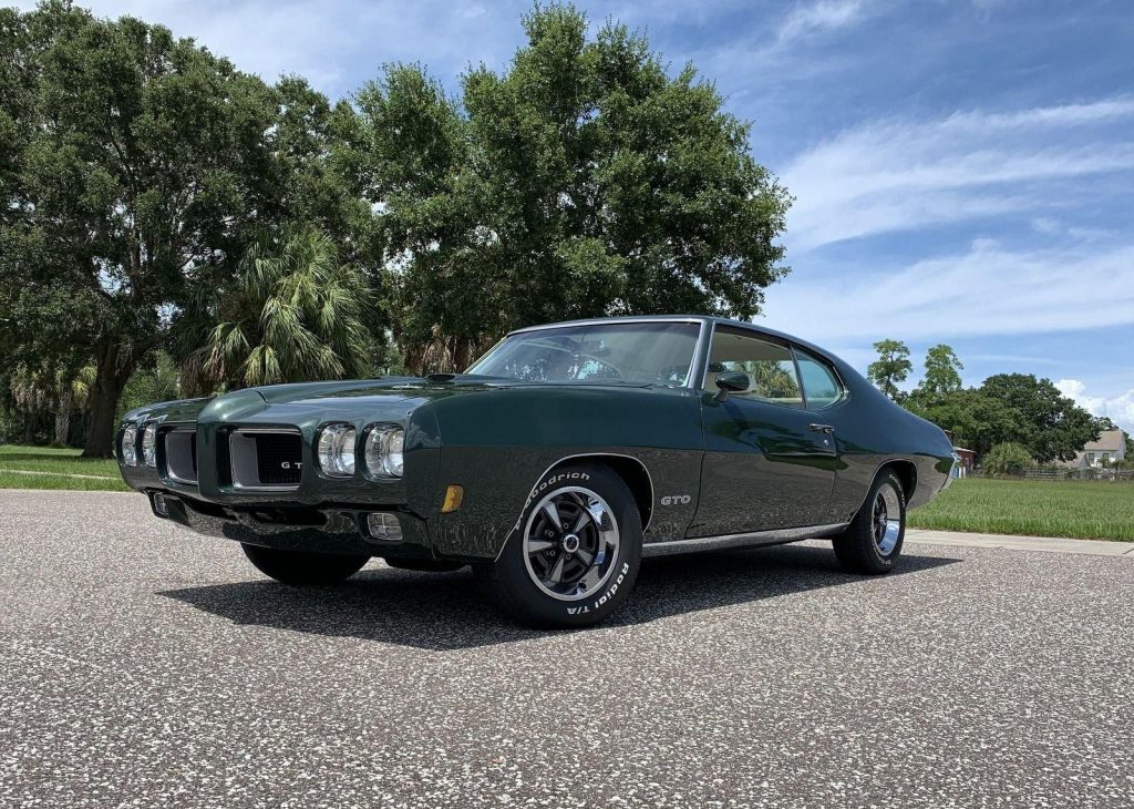 We are pleased to offer this 1970 Pontiac GTO for Sale. Body off restoration. Numbers matching 400 Cu In engine block factory rated at 350 horsepower, Quadrajet 4 barrel carburetor, dual exhaust with quad tips, Silver Sport 5 speed manual conversion, power steering, front power disc brakes, 15” Pontiac Rally II Wheels with BF Goodrich Radial T/A tires, beautiful metallic green exterior, scooped hood, color keyed mirrors with driver's remote, parchment bucket seat interior, center console, shoulder belts,…