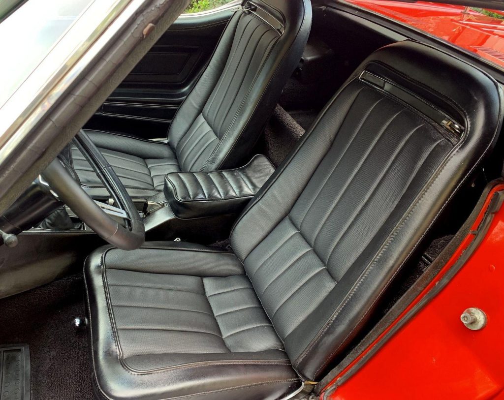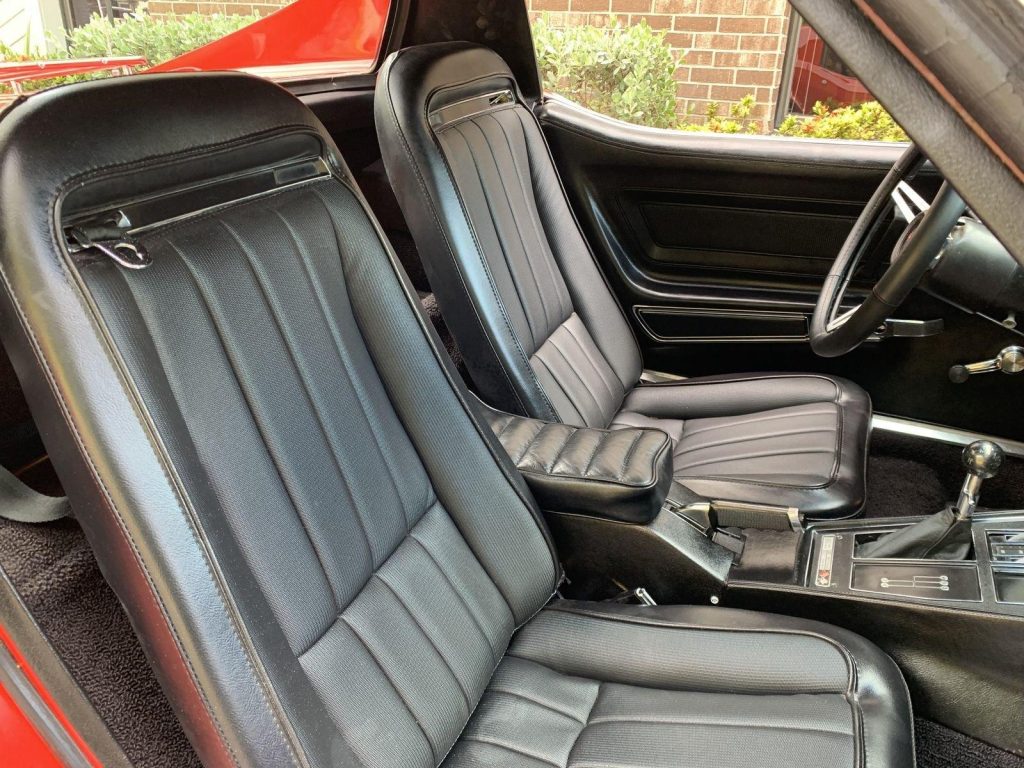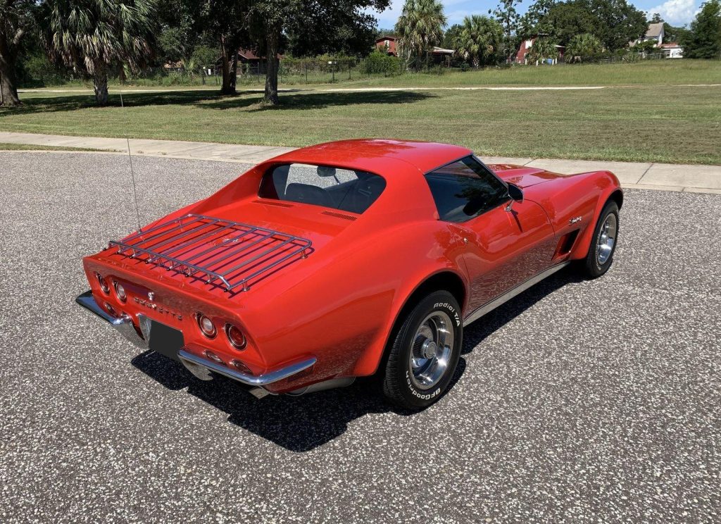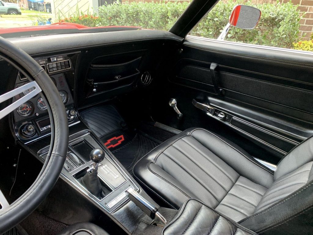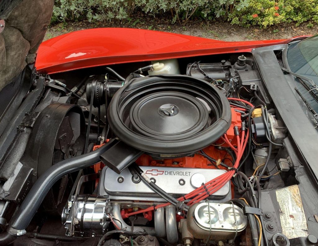 We are pleased to offer this 1973 Chevrolet Corvette for Sale. Numbers Matching 350 Cu In V8 engine block, upgraded Vortech Style cylinder heads by Summit, Quadrajet 4-barrel Carburetor, dual snorkel air cleaner, HEI electronic ignition, numbers matching Muncie 4 speed manual transmission, power steering, 4-wheel disc brakes, 15” Rally Wheels with 225/60/15 front and 235/60/15 rear tires, ceramic coated headers, dual exhaust, factory Code 976 Mille Miglia Red, working vacuum operated headlights, color keyed T-Tops, rear luggage…
