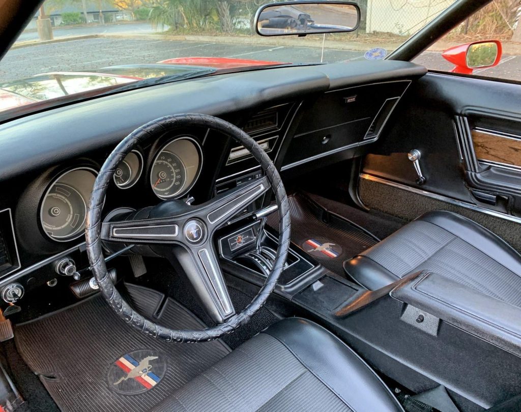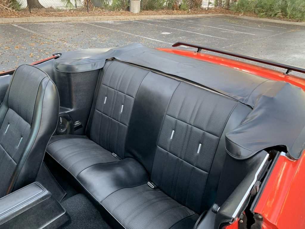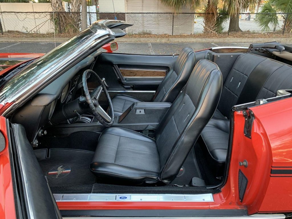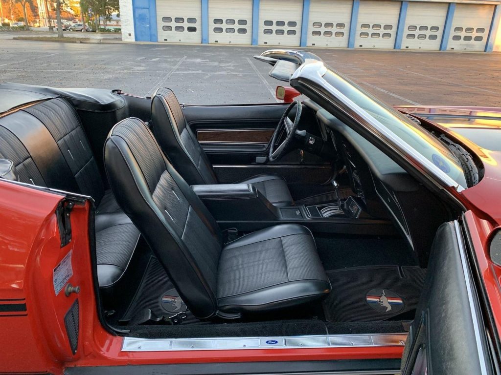 We are pleased to offer this 1973 Ford Mustang Convertible,with its numbers-matching 302 V8 and C4 automatic transmission. Equipped with power steering, power disc brakes, and 14” Magnum 500 wheels with Cooper white letter tires, this Mustang delivers both style and drivability. Finished in bright red with a black stripe package, rear deck spoiler, and black power convertible top with boot, it has a true muscle car presence. The interior features black knitted vinyl bucket seats, floor shifter,…